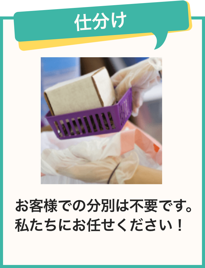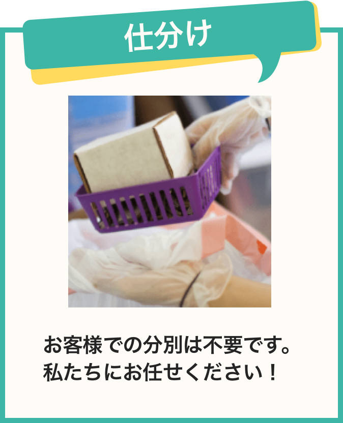 分別・回収・搬出作業は、すべてスタッフが迅速に対応いたします。
