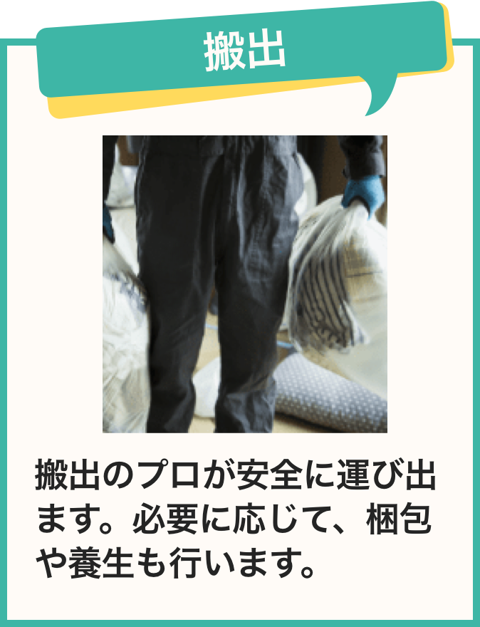 搬出作業は、すべてスタッフが迅速に対応いたします。 完了後にご精算となります。