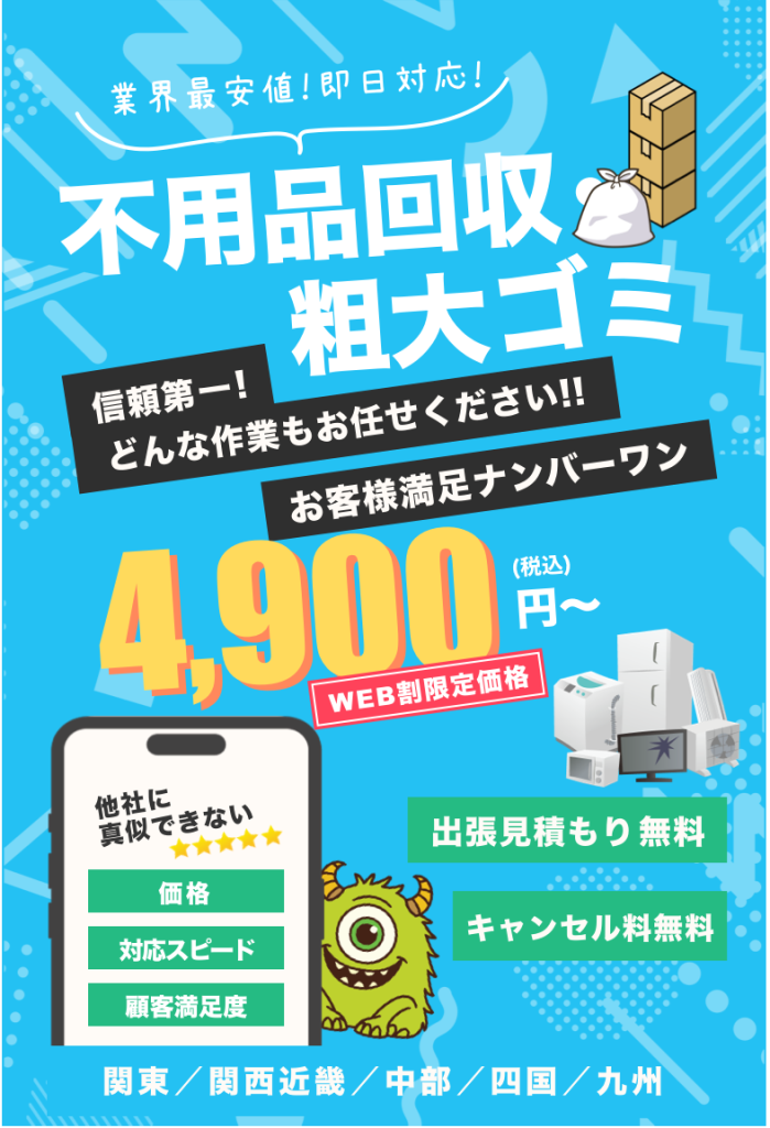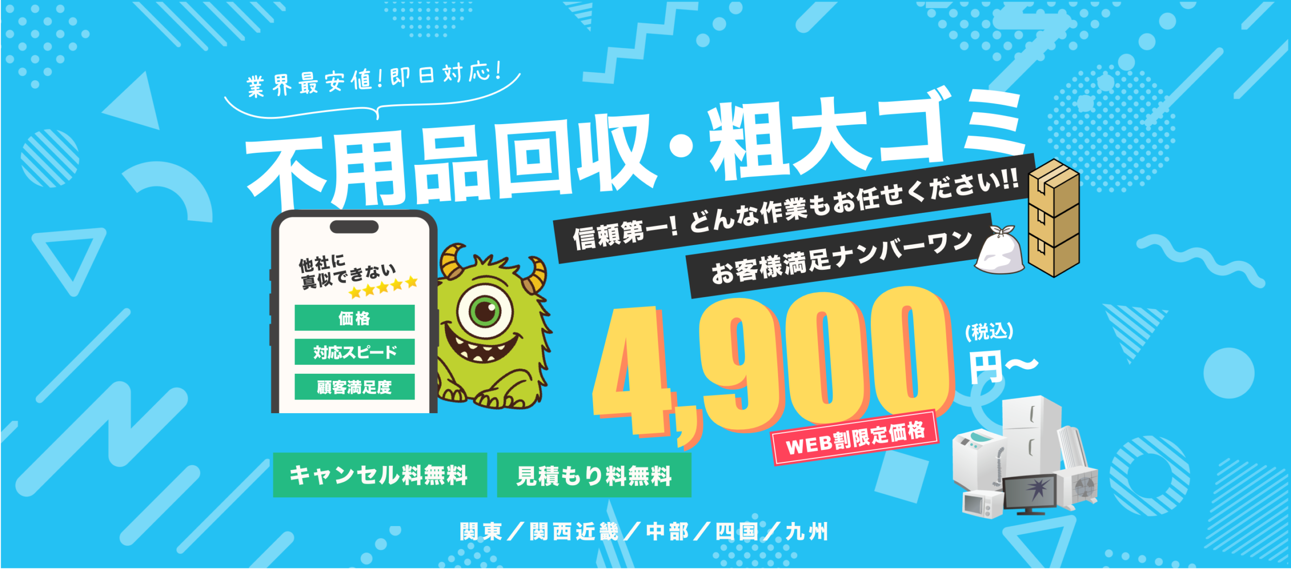 不用品回収だけでなく、遺品整理や家財処分に関する豊富な経験を充実のサービスで