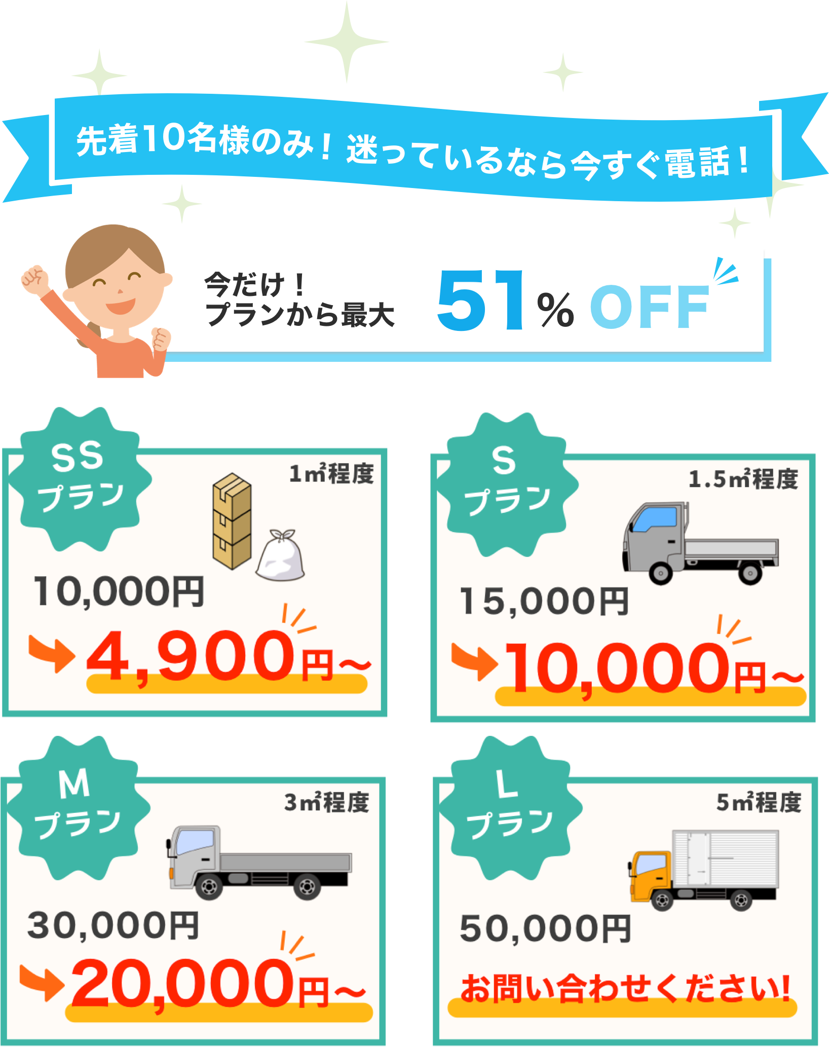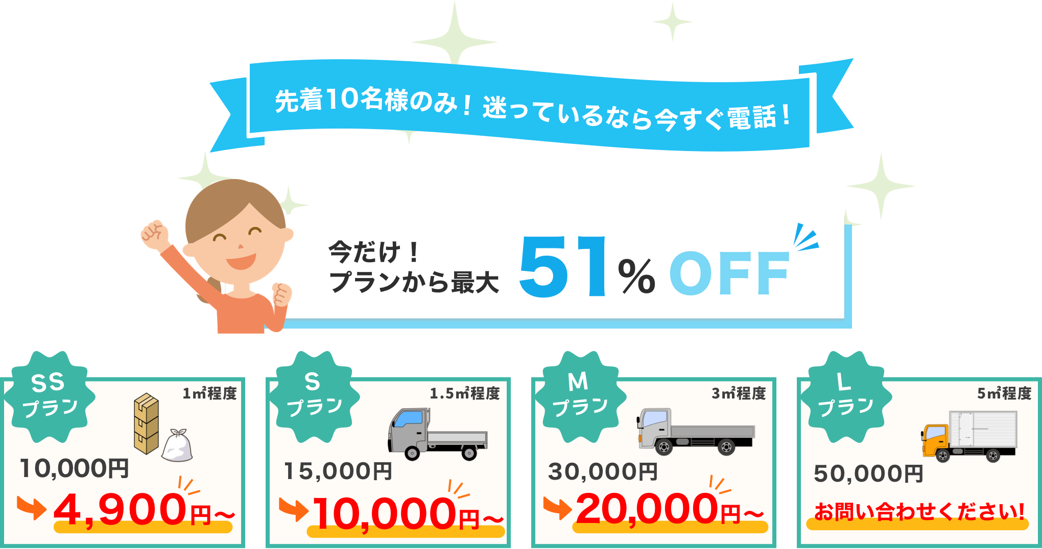 現地でお見積もりを致します。費用にご納得いただいた上でご契約となります。 他社より1円でも高い場合は、ご相談ください。